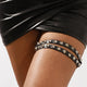 Introducing our latest addition to the collection - the thigh belt with circular metal ring. Perfect for a night of sharp, sexy dance moves at any party. Adjustable size ensures a perfect fit while the six color options (black, white, red, pink, yellow, rose red) allow for versatility in any outfit. A must-have sensual accessory.